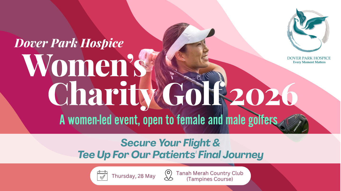 Inspired by the resilience and strength of women in caregiving roles, Dover Park Hospice is proud to host a Women’s Charity Golf on Thursday, 28 May 2026, at Tanah Merah Country Club — a women-led event supported by a wider community coming together for the cause. We warmly welcome corporates and male supporters to join us on the course, standing with and uplifting the women who carry the weight of caregiving every day. Together, we aim to raise $300,000 to support palliative patients and their families.